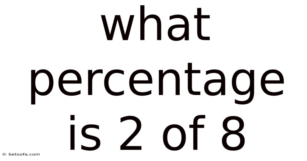 At first glance, the question "what percentage is 2 of 8?That said, this simple calculation is a fundamental gateway to understanding how we compare parts to a whole in nearly every aspect of life—from calculating discounts during a shopping spree to interpreting poll results and understanding statistical data. On top of that, " might seem like a basic arithmetic problem from a school textbook. This article will unpack the concept of percentages from the ground up, explore its practical applications, clarify common errors, and demonstrate why mastering this core idea is an essential life skill. The answer, 25%, is just the beginning. Whether you're a student, a professional managing a budget, or simply a curious learner, a deep understanding of this relationship between numbers empowers you to make more informed decisions.