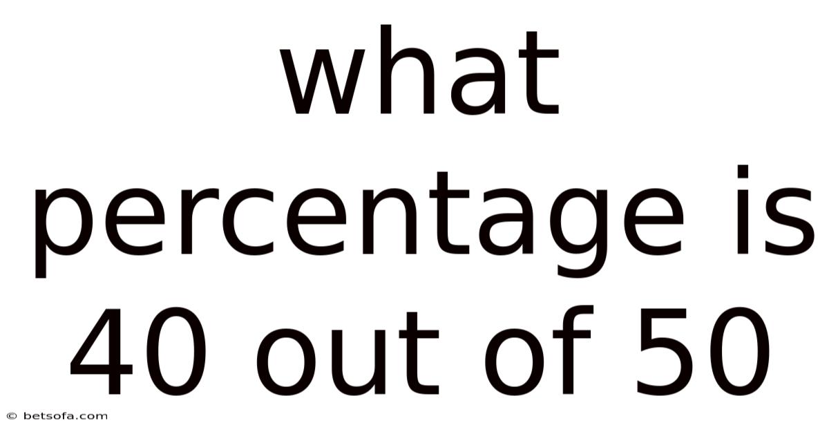 Once you hear the question “what percentage is 40 out of 50?Now, in this article we will unpack the concept of percentage, walk through the exact calculation for 40 ÷ 50, explore why the result matters in real‑world contexts, and address common pitfalls that often trip up learners. ”, the answer may seem obvious to some, yet the underlying process reveals a fundamental mathematical skill that we use every day—from grading exams to budgeting household expenses. By the end, you’ll not only know that 40 out of 50 equals 80 %, but you’ll also understand how to apply the same method to any pair of numbers with confidence.