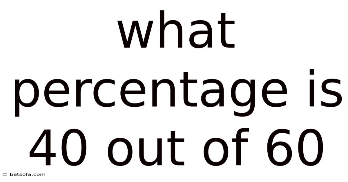 Understanding percentage calculations is a foundational skill that underpins countless aspects of daily life, finance, and academia. At its core, determining what percentage a specific value represents involves translating raw numbers into a relatable proportion. When examining 40 out of 60, this exercise serves as a gateway to grasping broader concepts of proportion, ratios, and statistical interpretation. For individuals seeking clarity in data-driven decisions, such calculations provide a concise lens through which to analyze relationships between quantities. Whether assessing market trends, evaluating survey results, or simplifying complex datasets, mastering this skill enables informed reasoning. The process itself demands precision, requiring careful attention to arithmetic and contextual understanding. Beyond mere computation, interpreting percentages fosters a deeper appreciation for quantitative analysis, making it a critical tool for both casual learners and professionals alike. This article gets into the intricacies of calculating 40 over 60, offering not only the numerical answer but also the methodologies and implications behind such a straightforward yet nuanced calculation.