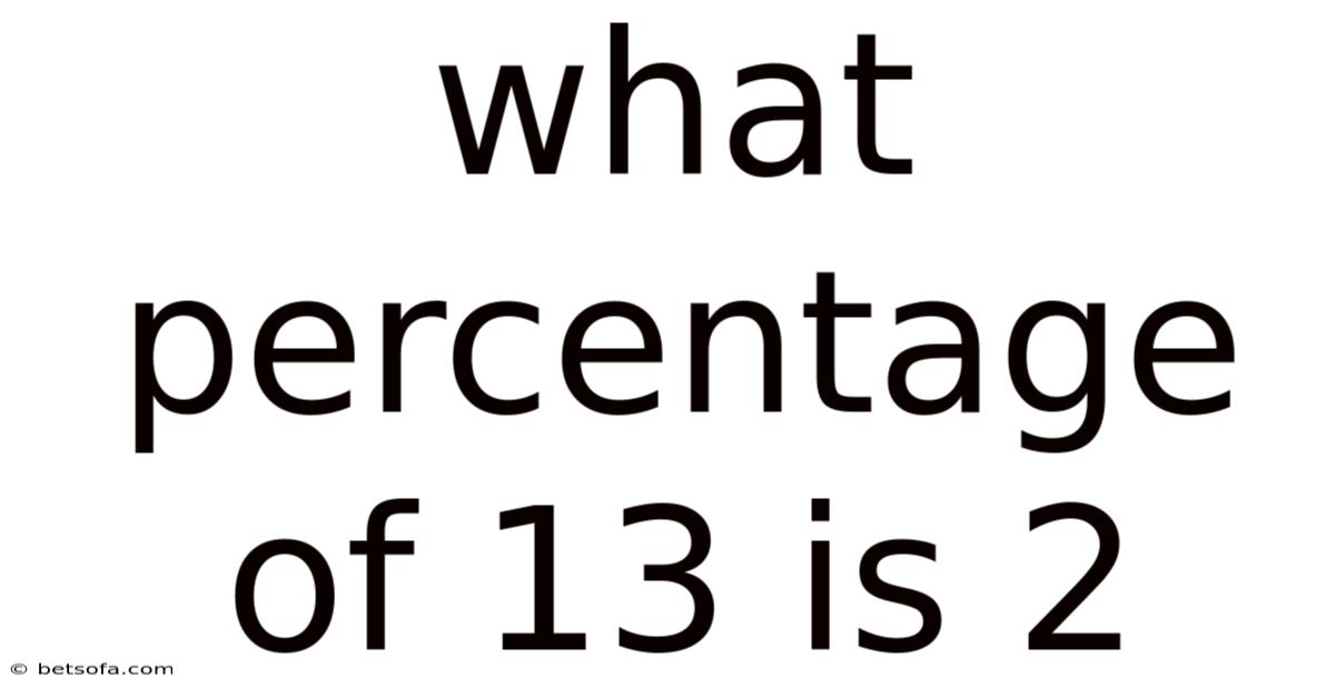 Q: What percentage of 13 is 2? A: 2 is approximately 15.38% of 13. This is found by dividing 2 by 13 and multiplying by 100.