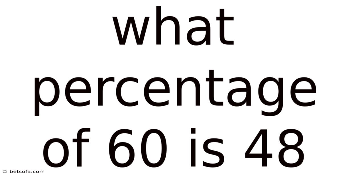 In our daily lives, we constantly encounter situations where we need to understand proportions, compare quantities, or calculate changes. From figuring out a discount on a sale item to interpreting test scores or analyzing financial reports, the concept of a percentage is a fundamental mathematical tool. At its heart, a percentage is simply a way of expressing a number as a fraction of 100. The seemingly simple question, "What percentage of 60 is 48?" serves as a perfect gateway to mastering this essential skill. In real terms, it’s not just about plugging numbers into a formula; it’s about understanding the relationship between a part and a whole. This article will deconstruct this specific calculation, explore the underlying principles, and demonstrate why this knowledge is so widely applicable, ensuring you can confidently tackle any similar problem.