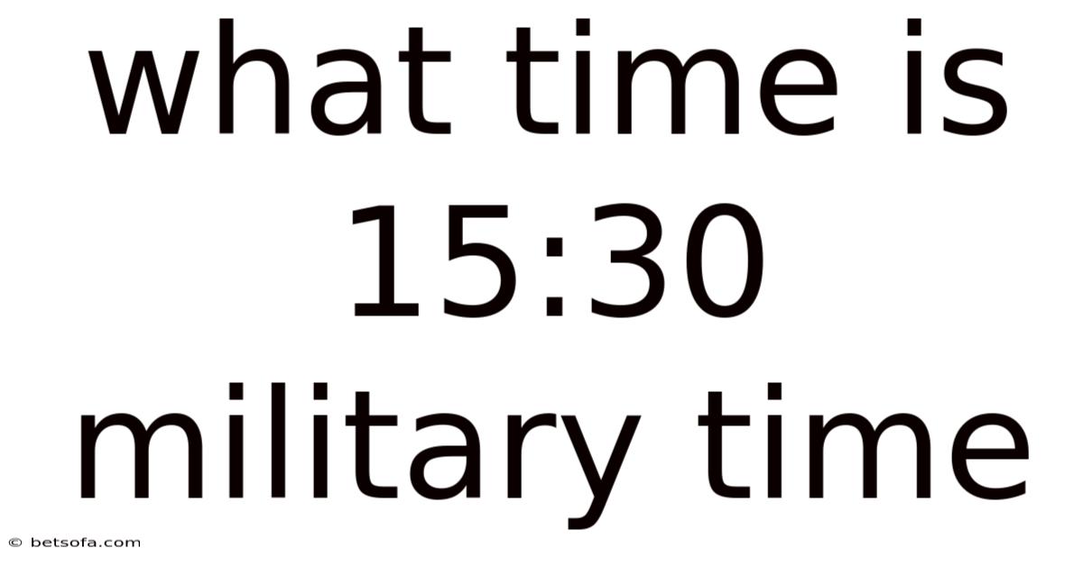 Q: What is 15:30 in military time? A: 15:30 in military time is 3:30 PM in the standard 12-hour clock system.