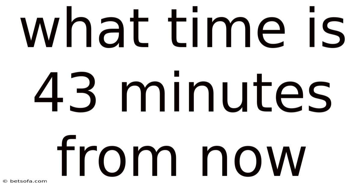 In the modern world, where precision and punctuality dictate the rhythm of our daily lives, the ability to quickly calculate future times is more than a mathematical exercise—it is a practical necessity. Whether you are scheduling a meeting, setting a timer for a task, or coordinating with someone across time zones, understanding what time is 43 minutes from now allows you to manage your time with confidence. This specific duration, just over two-fifths of an hour, represents a common timeframe used in various contexts, from short breaks to brief appointments. This article will provide a complete walkthrough to determining the time 43 minutes in the future, breaking down the logic behind the calculation and addressing potential pitfalls to ensure you can perform this calculation effortlessly in any situation Worth keeping that in mind..