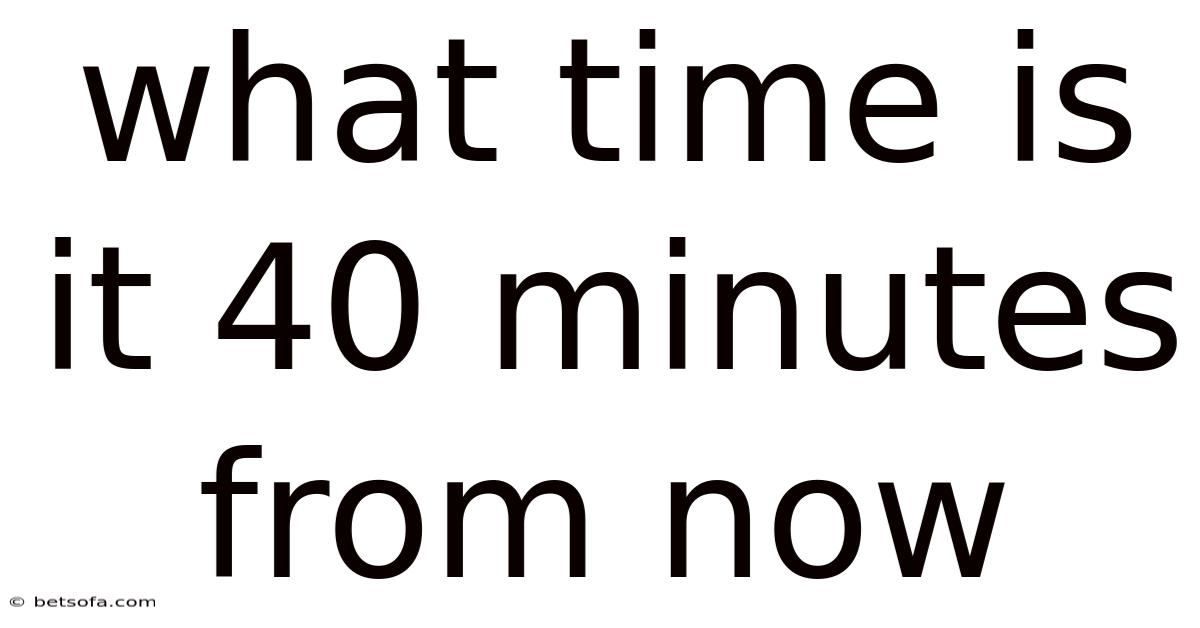 Knowing what time it is 40 minutes from now is a deceptively simple question that touches on daily scheduling, mental arithmetic, and practical time management. But at its core, calculating a time 40 minutes ahead involves adding a fixed duration to the current moment while accounting for hour rollovers, AM/PM transitions, and the base-60 structure of our clock system. Whether you are timing a commute, planning a meeting, or simply trying to catch a train, the ability to accurately project future time intervals is an essential life skill. This article will guide you through the mechanics, real-world applications, and cognitive principles behind this everyday calculation, transforming a basic question into a structured framework for better time awareness Not complicated — just consistent..