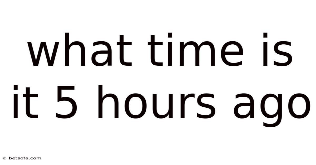 The question "What time is it 5 hours ago?" seems simple at first glance, yet it encapsulates a profound interplay between time perception, temporal awareness, and the human condition. At its core, this query challenges individuals to confront the fluidity of time itself, a concept that defies rigid definitions yet remains central to daily life. Whether navigating personal routines, professional responsibilities, or global events, understanding how time shifts over hours reveals deeper insights into our reliance on structured schedules. This article gets into the mechanics behind calculating past times, exploring the nuances of time zones, and addressing common misconceptions that often cloud our grasp of temporal reality. By unraveling these layers, we uncover not only practical solutions but also a renewed appreciation for the detailed dance between precision and unpredictability that governs our existence. The journey here is not merely about solving equations but recognizing how time shapes human behavior, cultural practices, and even the very fabric of memory and anticipation Worth keeping that in mind. Practical, not theoretical..