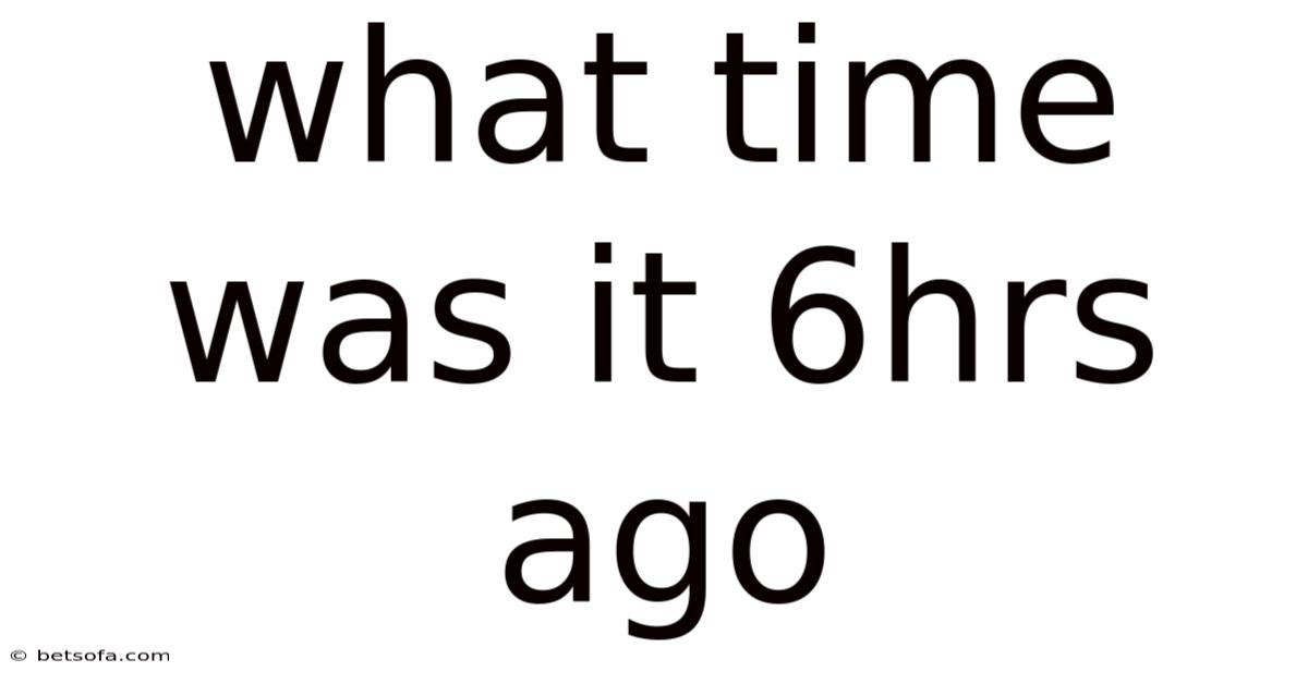 The importance of knowing what time was 6 hours ago cannot be overstated. Whether you are checking your schedule, planning a meeting, or reflecting on past events, having a clear understanding of time is crucial. Worth adding: this article will explore the mechanics behind this calculation, offering insights into how we can accurately determine past timings. By breaking down the process step by step, we aim to provide a full breakdown that enhances your grasp of time measurement Small thing, real impact..