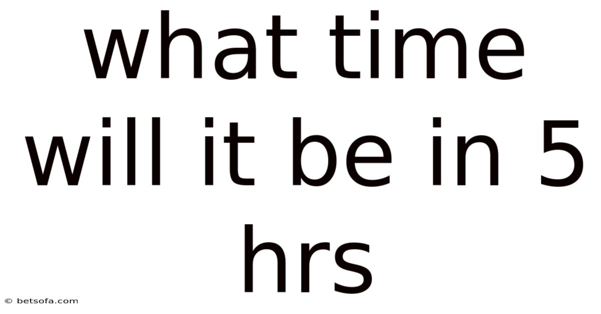 Ever glanced at a clock and wondered, what time will it be in 5 hrs? This simple question pops up when planning a meeting, setting an alarm, or coordinating with friends across different regions. At its core, the query is about adding a fixed interval—five hours—to a given moment and interpreting the result within our 12‑ or 24‑hour clock system. Understanding how to perform this calculation correctly helps avoid missed appointments, confusion over AM/PM designations, and errors when crossing midnight or time‑zone boundaries. In the following sections we’ll break down the concept step by step, illustrate it with real‑world scenarios, explore the underlying principles of time measurement, and highlight common pitfalls to watch out for.