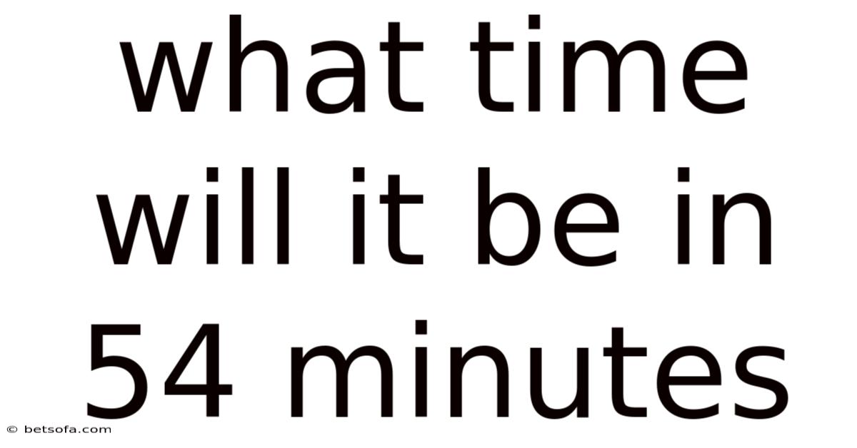 Calculating what time it will be in 54 minutes is a straightforward process once you understand the basics of time addition and the sexagesimal system. By following the steps outlined in this article, you can quickly determine future times without confusion. Whether you're scheduling tasks, planning breaks, or simply satisfying curiosity, mastering this skill will help you stay organized and punctual in your daily life.