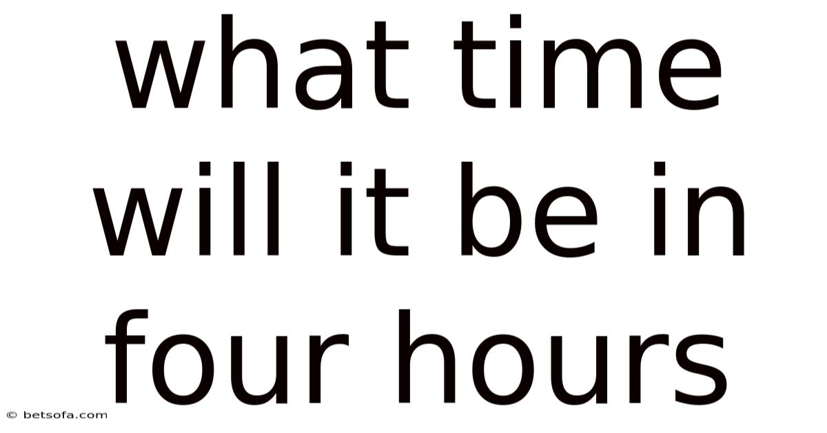 To answer the question "what time will it be in four hours," you essentially need to add four hours to your current time. This straightforward calculation forms the backbone of daily planning and scheduling. Still, the process involves understanding how our timekeeping system works, particularly the cyclical nature of hours and the transition between different periods of the day Worth keeping that in mind. Surprisingly effective..