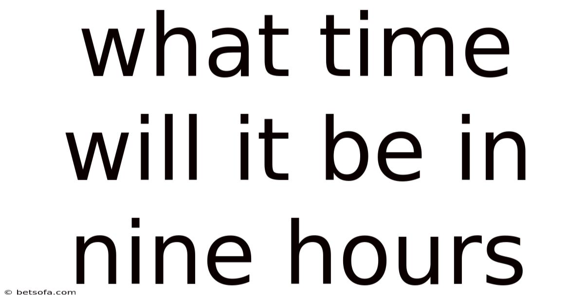 Time is one of the most fundamental aspects of our daily lives, governing everything from work schedules to travel plans and personal appointments. On the flip side, this complete walkthrough will walk you through the process of determining what time it will be in nine hours, covering everything from basic arithmetic to the complexities of time zones and daylight saving time adjustments. In real terms, whether you're planning a meeting, calculating when to take medication, or determining when your flight will arrive, understanding how to calculate future time is an essential life skill. Also, the question "what time will it be in nine hours" is deceptively simple yet carries significant practical importance in our modern, fast-paced world. By the end of this article, you will have a thorough understanding of time calculation and be able to confidently determine future times in any situation.