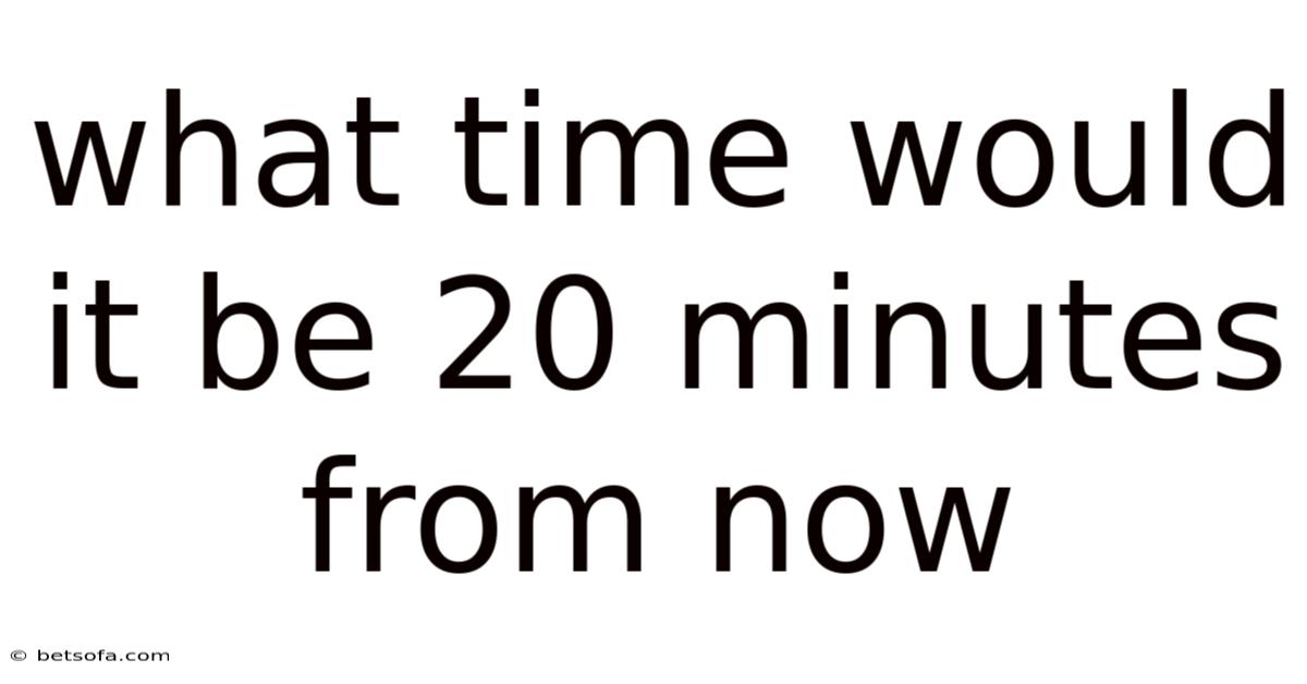 Time is one of the most fundamental concepts we interact with daily, yet many people find themselves momentarily stumped when asked to quickly calculate what time it will be a certain number of minutes in the future. Whether you're trying to determine when a timer will go off, planning when to leave for an appointment, or simply curious about the mechanics of time calculation, understanding how to compute future time accurately is an essential life skill. And the question "what time would it be 20 minutes from now" seems simple at first glance, but it touches on important mathematical concepts, timekeeping traditions, and practical skills that can be useful in countless everyday situations. This full breakdown will walk you through everything you need to know about calculating what time it will be 20 minutes from now, including step-by-step methods, real-world examples, common pitfalls to avoid, and the fascinating historical context behind how we measure time And it works..