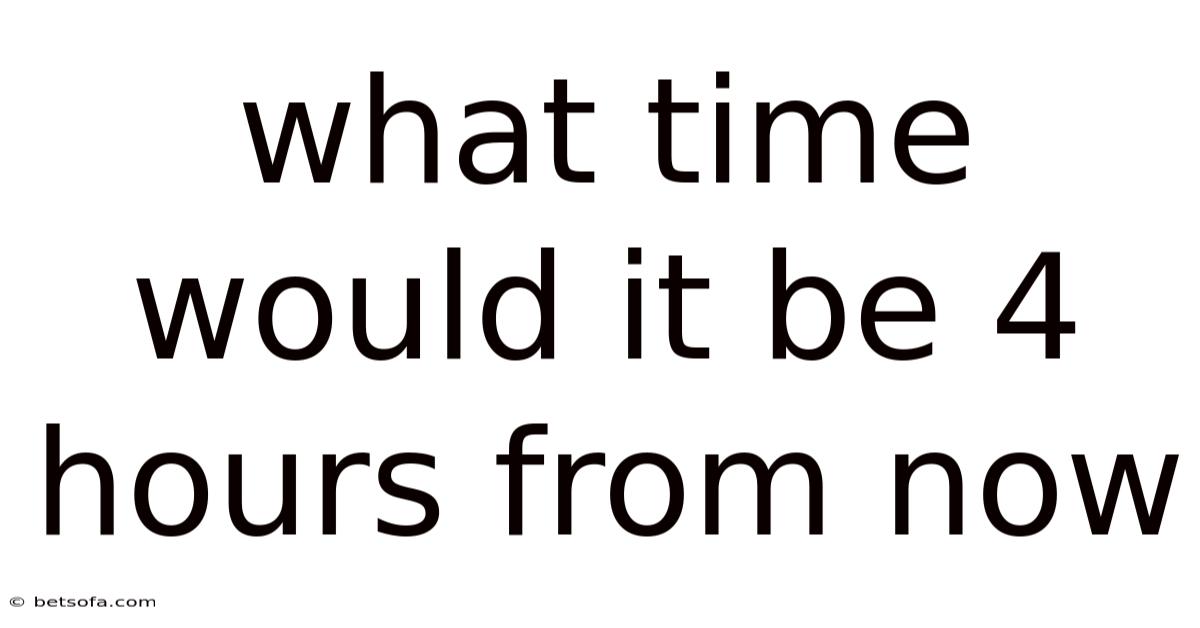what time would it be 4 hours from now is a simple yet frequently asked question that blends everyday life with basic arithmetic. Whether you’re planning a meeting, catching a flight, or just curious about the future moment, understanding how to calculate future time instantly helps you stay organized and avoid missed appointments. This article breaks down the concept step by step, provides real‑world examples, and explores the underlying principles that make time calculations reliable. By the end, you’ll have a clear mental toolkit for answering “what time would it be 4 hours from now” in any situation But it adds up..