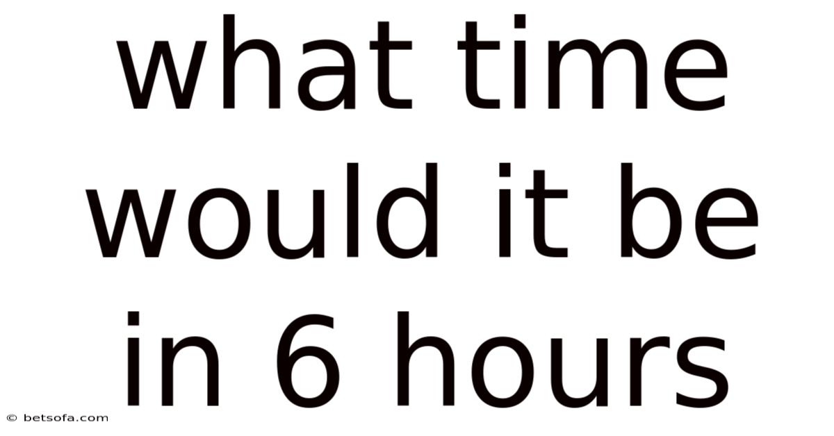 At first glance, the question "What time would it be in 6 hours?Which means " seems like the simplest of arithmetic puzzles. You look at your watch, add six to the current hour, and you have your answer. That said, yet, this deceptively simple query serves as a perfect gateway to understanding the fundamental systems we use to measure and manage our days. It’s a practical skill essential for scheduling, travel, cooking, and coordinating across distances. More importantly, it forces us to confront the cyclical nature of our timekeeping systems—the 12-hour clock with its AM/PM dichotomy and the 24-hour "military" or international format. Mastering this calculation isn't just about getting a number; it’s about building a mental model for how time flows, resets, and connects us globally. This article will transform that basic question into a comprehensive lesson on temporal arithmetic, real-world application, and the scientific principles underpinning the clock on your wall That's the whole idea..