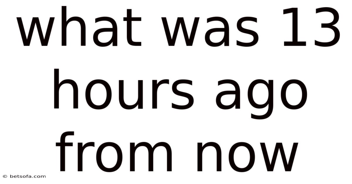 Q: Can I use a calculator or app to find what time it was 13 hours ago? A: Absolutely. Many world clock apps and online time calculators can instantly show you the time 13 hours ago, accounting for time zones and daylight saving changes.