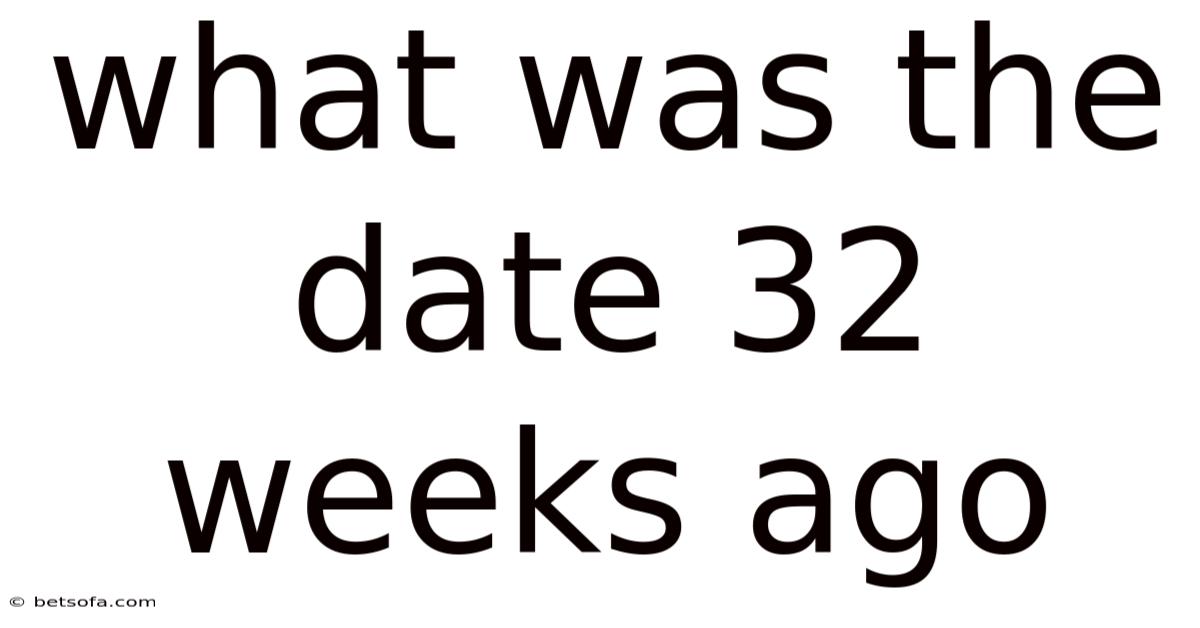 Q3: Why is it important to know what date it was 32 weeks ago? A3: Knowing the date 32 weeks ago can be important for tracking historical events, project timelines, or personal milestones It's one of those things that adds up..