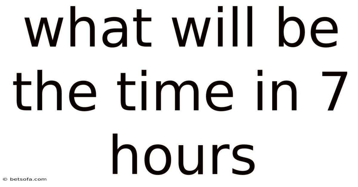 Knowing what the time will be in 7 hours is a common question that arises in daily life, whether you're scheduling a meeting, planning travel, or simply curious about future time. Think about it: this article will explore how to calculate the time 7 hours from now, explain the underlying concepts of time zones and clock systems, and provide practical examples to help you master this simple yet essential skill. Understanding how to determine future time is not only useful but also helps in managing schedules, coordinating across different regions, and avoiding confusion in time-sensitive situations.