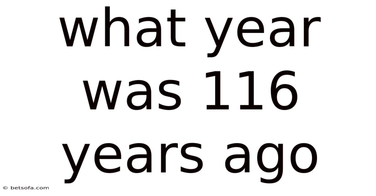 When we ask, what year was 116 years ago?, we are diving into a fascinating journey through time. This question not only challenges our understanding of time but also highlights how the passage of years shapes our perception of history. Whether you're a student, a history enthusiast, or simply curious about the past, this article will provide you with a detailed and insightful look at the year that was 116 years ago.