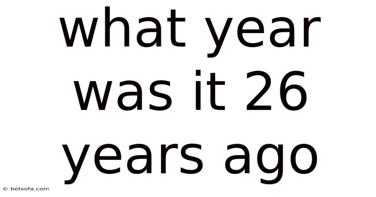 At first glance, the question "What year was it 26 years ago?Which means this article will transform that basic calculation into a comprehensive exploration of how we work through time. " seems like a simple, almost trivial, arithmetic problem. We will move beyond the single answer to understand the methods for finding any past year, the context that gives that year meaning, and the cognitive tools we use to perform such calculations effortlessly. That said, this deceptively simple query opens a fascinating window into temporal calculation, mental math strategies, and our fundamental human need to anchor ourselves within the flow of history. You take the current year, subtract 26, and you have your answer. The core keyword here is calculating a past year, a skill that bridges everyday practicality with a deeper comprehension of chronology Most people skip this — try not to..