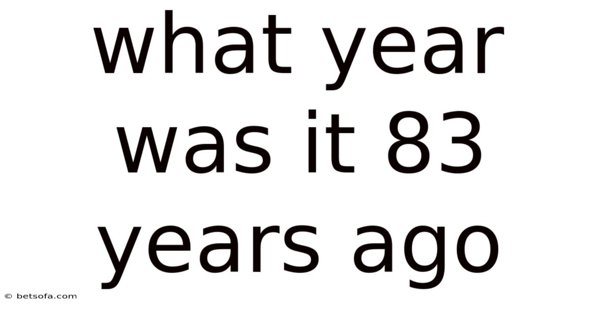 When we talk about a moment in history, we often focus on major events or milestones that shape our present. In real terms, in this article, we will break down the details of this question, uncovering the exact year, understanding its historical context, and exploring the significance of this timeframe. On the flip side, there is a fascinating question that lingers in the minds of many: *What year was it 83 years ago?On the flip side, * This seemingly simple query opens the door to a deeper exploration of time, memory, and the way we perceive progress. Whether you're a student, a history enthusiast, or simply curious about the past, this full breakdown will provide you with valuable insights.