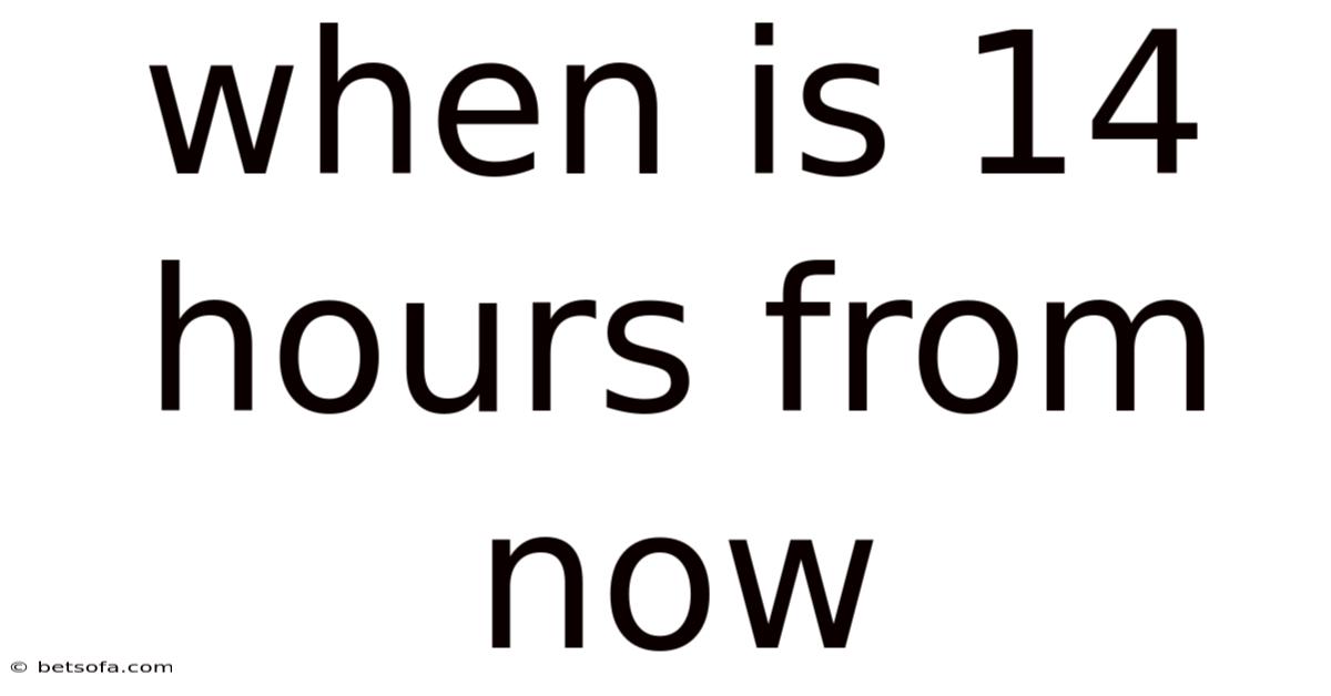 Time is one of the most critical yet often overlooked aspects of modern life. Whether you’re coordinating a global business meeting, planning a trip across time zones, or simply trying to manage your daily schedule, understanding how to calculate time intervals is essential. Because of that, one common query that arises in both personal and professional contexts is: “When is 14 hours from now? ” This question, while seemingly simple, can become complex depending on factors like time zones, daylight saving adjustments, and the starting time. In this article, we’ll explore the mechanics of calculating 14 hours from any given moment, provide real-world examples, and address common pitfalls to ensure accuracy.