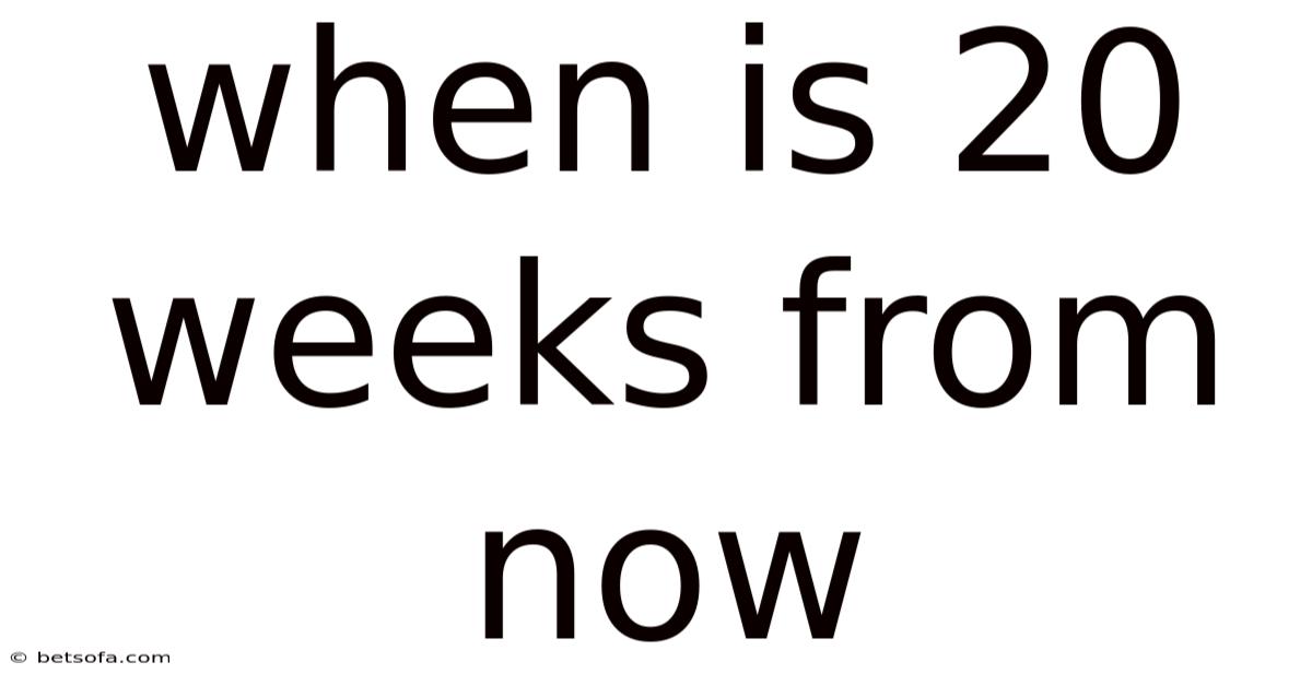 The phrase “20 weeks from now” is often used in scenarios where a specific time frame is needed for planning or tracking. Now, in medical contexts, for instance, a doctor might ask a patient to return for a follow-up appointment 20 weeks from their initial visit. On the flip side, this is common in prenatal care, where 20 weeks is a critical checkpoint in a pregnancy. Similarly, in project management, a team might set a deadline 20 weeks from the start of a project to assess progress.